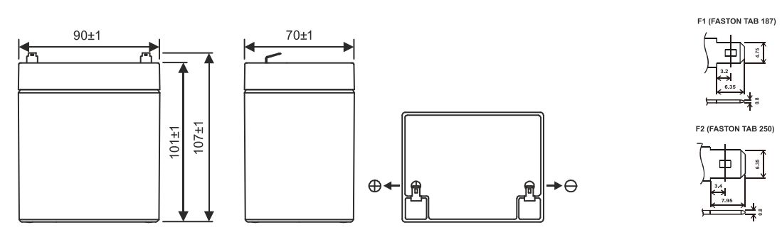 Хранение: от -40 °C до +60 °C Номинальная рабочая температура 25 °C Напряжение подзаряда 13.5 - 13.8 В при 25 °C (темп. ком. -3 мВ/˚С/Эл.) Максимальный ток заряда 1.35 A Напряжение заряда при циклическом режиме 14.4 - 15.0 В при 25 °C (темп. ком. -5 мВ/˚С/Эл.) Срок хранения До 6 месяцев при 25 °C, без подзаряда* Выводы F1-Faston Tab 187, F2-Faston Tab 250 Материал корпуса Ударопрочный ABS (акрило-бутадиен-стирол)