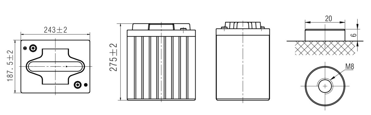 Кол-во элементов в блоке: 3 Номинальное напряжение: 6 В Номинальная емкость (С20): 245 Aч Вес: 32.4 кг ± 3% Емкость на режимах (при 25 ̊С): 270 Ач (при 100-часовом разряде)
