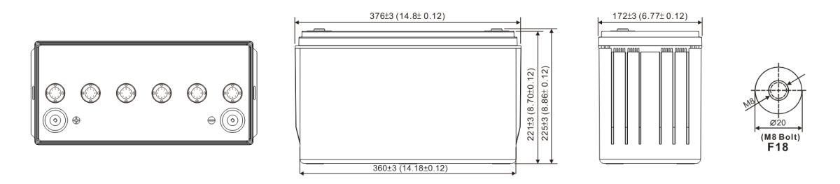 Хранение: от -40 °C до +60 °C Оптимальная рабочая температура 25 °C Напряжение подзаряда 13.50 - 13.65 В при 25 °C (темп. комп. -3 мВ/˚С/Эл.) Максимальный ток заряда 37.5 A Напряжение заряда при циклическом режиме 14.10 - 14.40 В при 25 °C (темп. комп. -5 мВ/˚С/Эл.) Ток короткого замыкания 3750 А (согласно IEC 60896-21-22) Срок хранения Батареи WBR серии HRL могут храниться до 6 месяцев при 25 ˚С* Полюсные выводы Под внутренний болт М8 (момент затяжки 12-20 Нм) Материал корпуса Ударопрочный негорючий ABS (акрило-бутадиен-стирол) Срок службы Более 12 лет в буферном режиме при 25 ˚С
