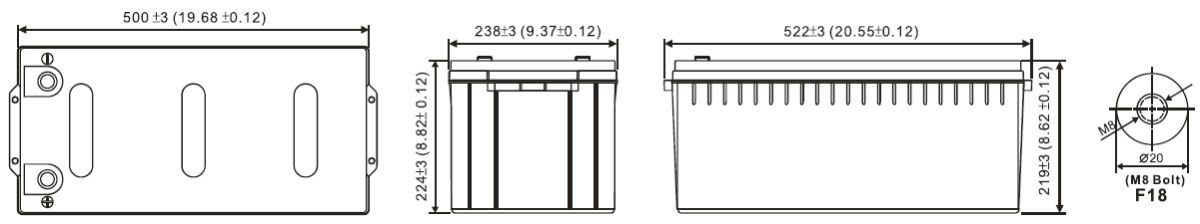 Номинальное напряжение 12 В (6 элементов в блоке) Номинальная мощность 820 Вт/Эл при 15-мин. разр. до Uкон. -1.6 В/Эл при 25 ˚С Номинальная ёмкость (С20) 230.0 Ач при 20-час. разряде до Uкон. - 1.75 В/Эл при 25 ˚С Вес 66.4 кг ± 3% Максимальный ток разряда (5 сек) 1600 A Внутреннее сопротивление 2.2 мОм Диапазон рабочих температур Разряд: от -40 °C до +60 °C, Заряд: от -20 °C до +60 °C, Хранение: от -40 °C до +60 °C Оптимальная рабочая температура 25 °C Напряжение подзаряда 13.50 - 13.65 В при 25 °C (темп. комп. -3 мВ/˚С/Эл.) Максимальный ток заряда 69 A Напряжение заряда при циклическом режиме 14.10 - 14.40 В при 25 °C (темп. комп. -5 мВ/˚С/Эл.) Ток короткого замыкания 4040 А (согласно IEC 60896-21-22) Срок хранения Батареи WBR серии HRL могут храниться до 6 месяцев при 25 ˚С* Полюсные выводы Под внутренний болт М8 (момент затяжки 12-20 Нм) Материал корпуса Ударопрочный негорючий ABS (акрило-бутадиен-стирол) Срок службы Более 12 лет в буферном режиме при 25 ˚С