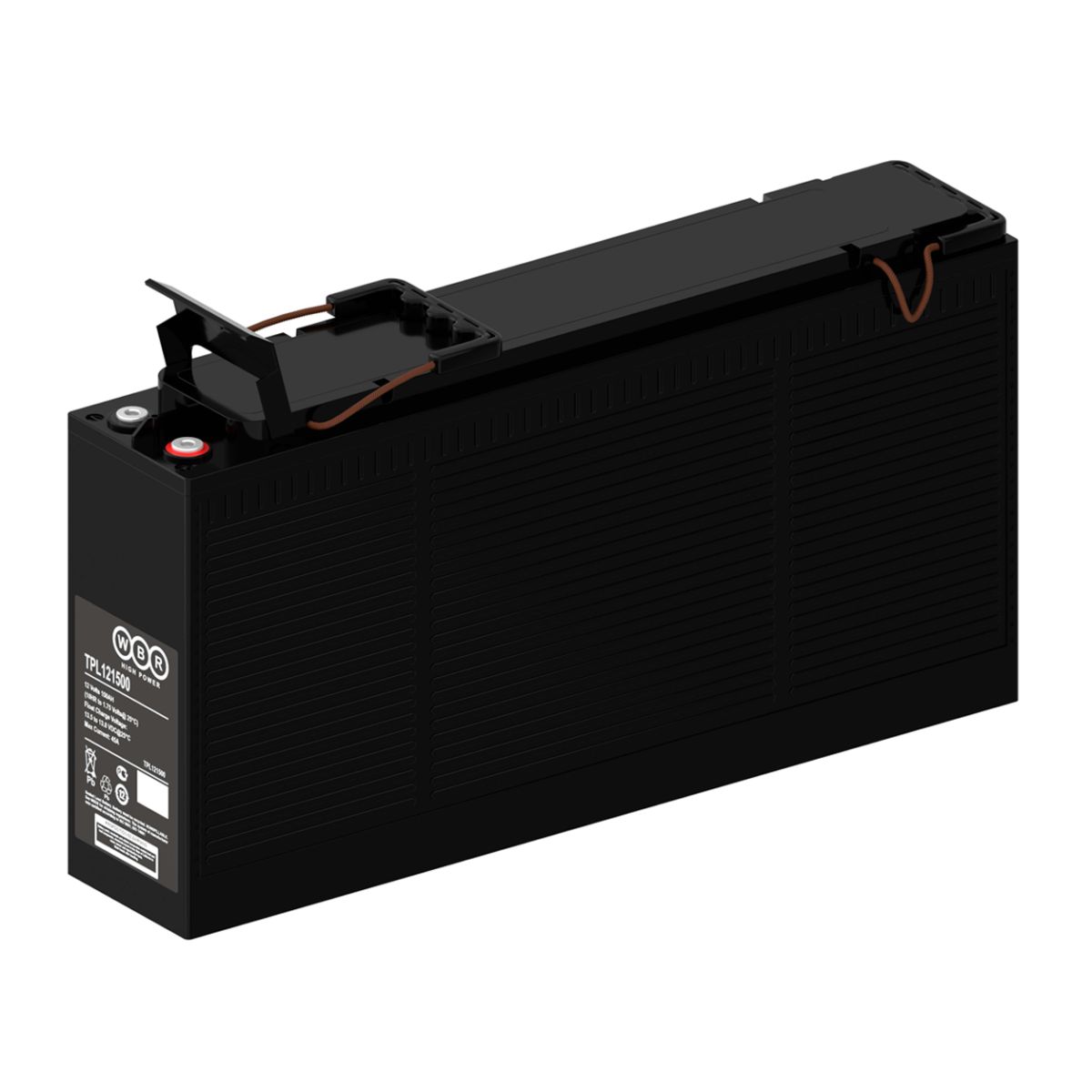 WBR TPL121500 - герметизированные, выполненные по технологии AGM, аккумуляторы с фронтальным расположением выводов и сроком службы 12 лет при 25 ˚С. Способность разряда большим током за короткий промежуток времени (до 5 мин) позволяет использовать эти батареи максимально эффективно в системах бесперебойного питания (UPS). Основные области применения: размещение в специальных 19- и 23-дюймовых батарейных шкафах; системы телекоммуникации и связи; системы пожарной и охранной сигнализации; медицинское оборудование; резервное питание различных промышленных объектов.
